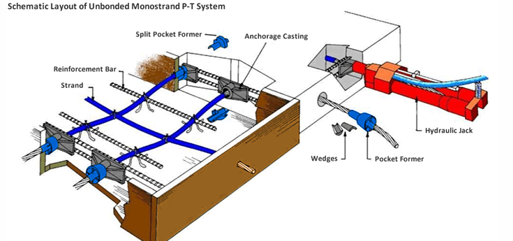 Typically a compressive strength of 22MPa is required before stressing the structure – the earlier the post tension can occur, the earlier the construction site can move forward with the build.