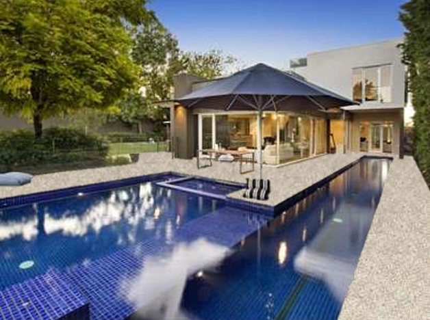 “Exposed Aggregate” is a very easy and smart way to add value to your house. After placement of the concrete, the top few millimetres of concrete paste are removed from the surface in order to reveal the stone (called: aggregate) embedded within. A sealer is applied to enhance and protect the finished product.