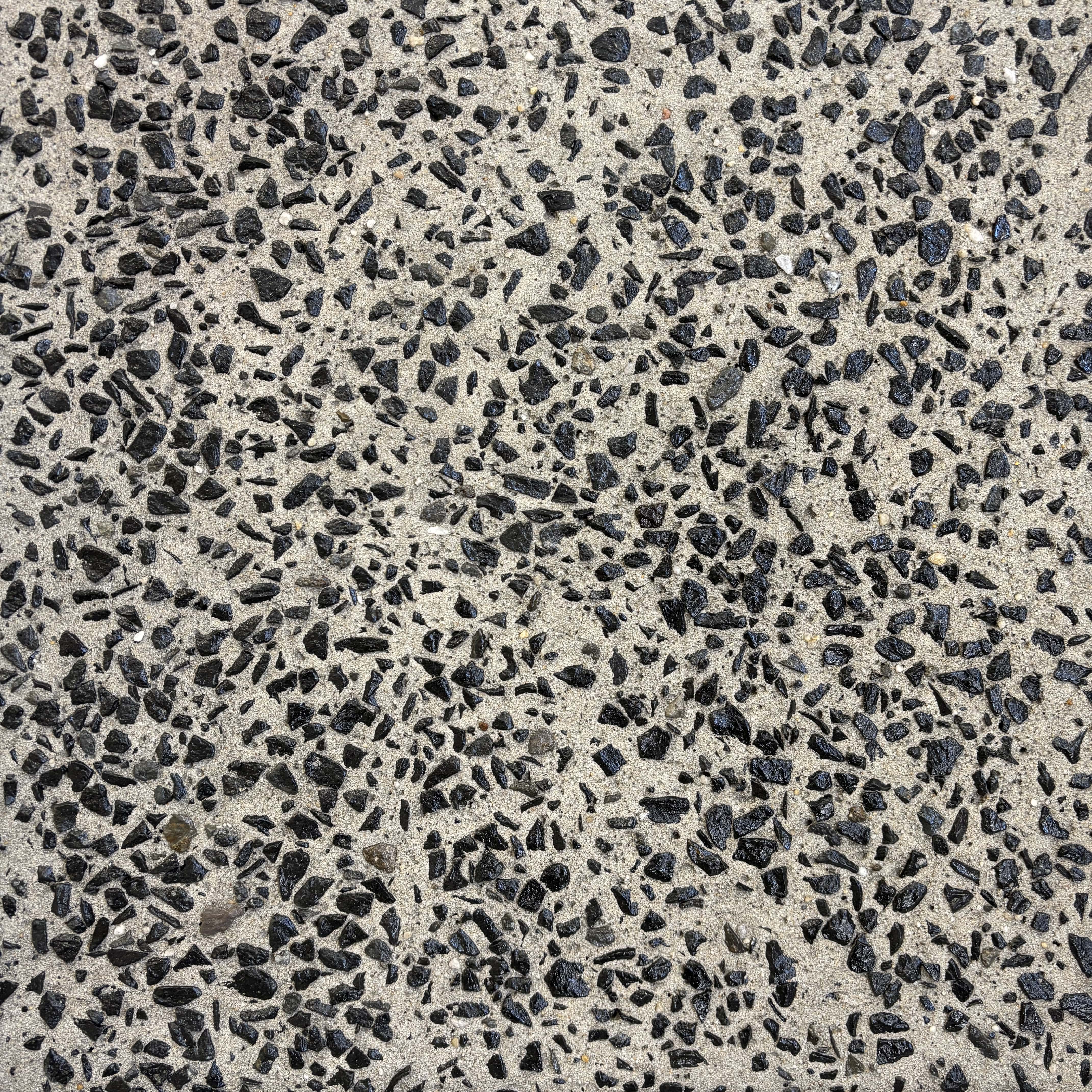 Aggregate Composition: Large dark stone aggregates, creating a bold and striking contrast.