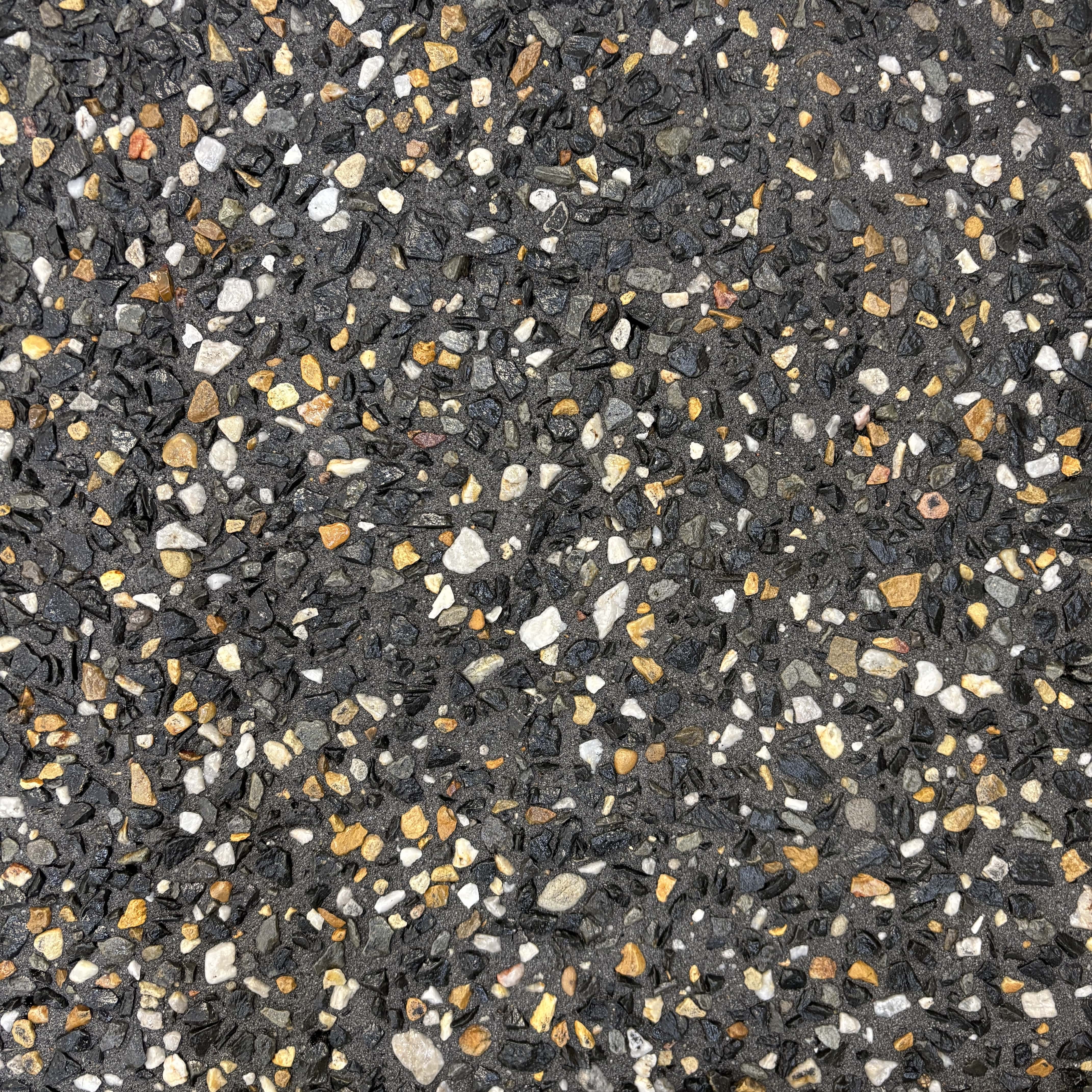 Aggregate Composition: Large dark stone aggregates with a small percentage of brown and white stones for added contrast.